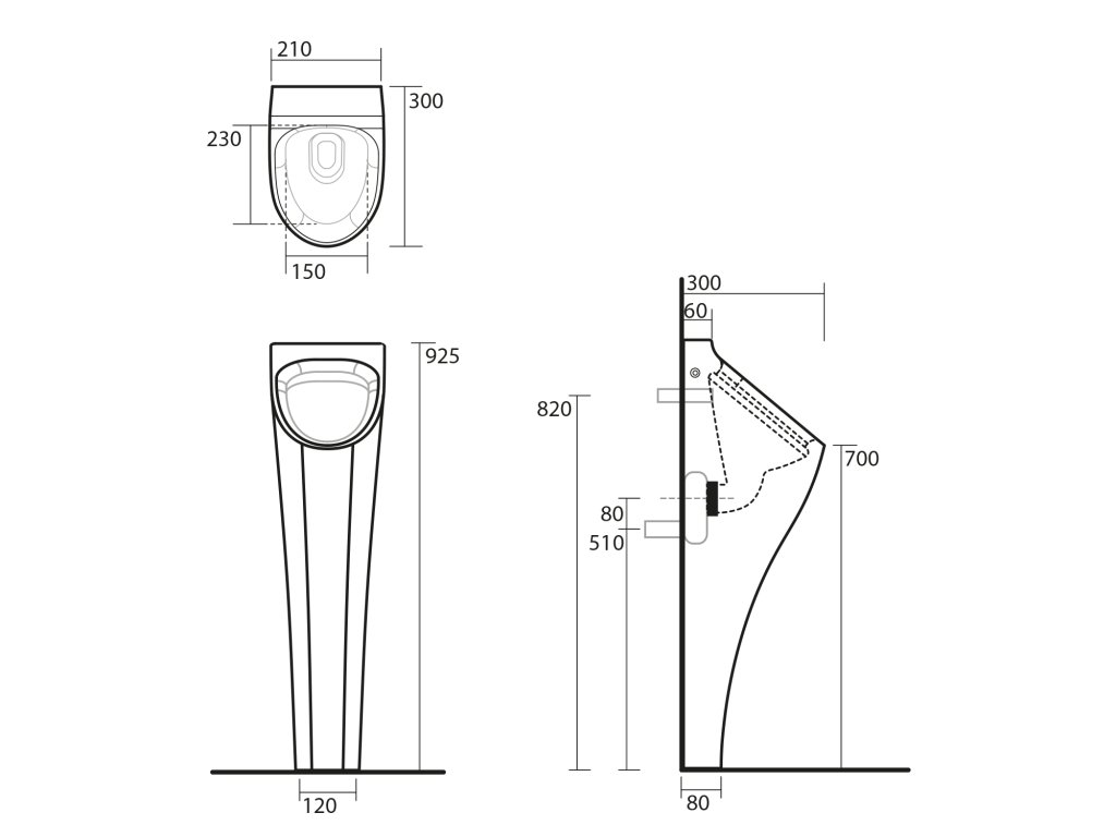 Kerasan AQUATECH urinál na postavení se zakrytým přívodem vody 21x92, 5x30 cm, včetně sifonu, bílá 373001