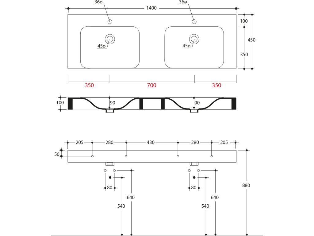 Kerasan CENTO keramické dvojumyvadlo 140x45cm, bílá 353601