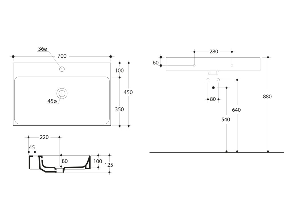 Kerasan CENTO keramické umyvadlo 70x45cm, bílá 353201