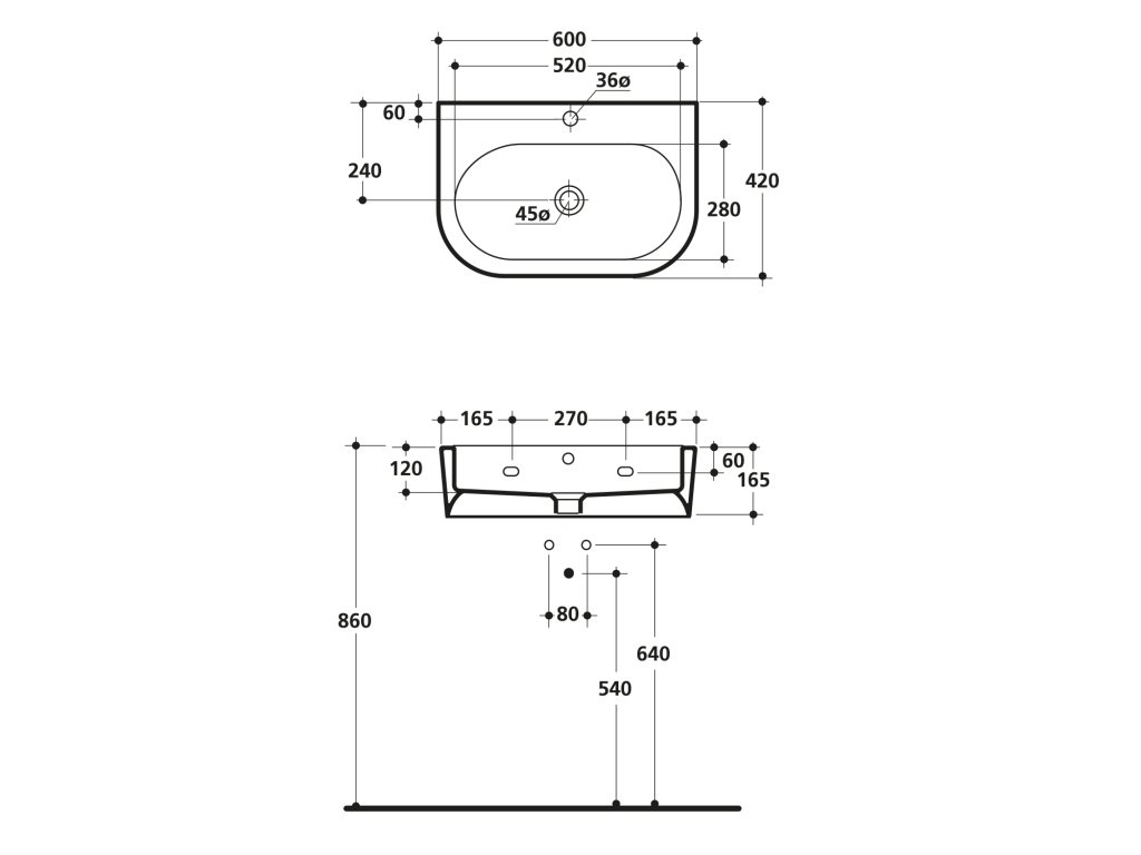 Kerasan FLO keramické umyvadlo 60x42cm, bílá 314201