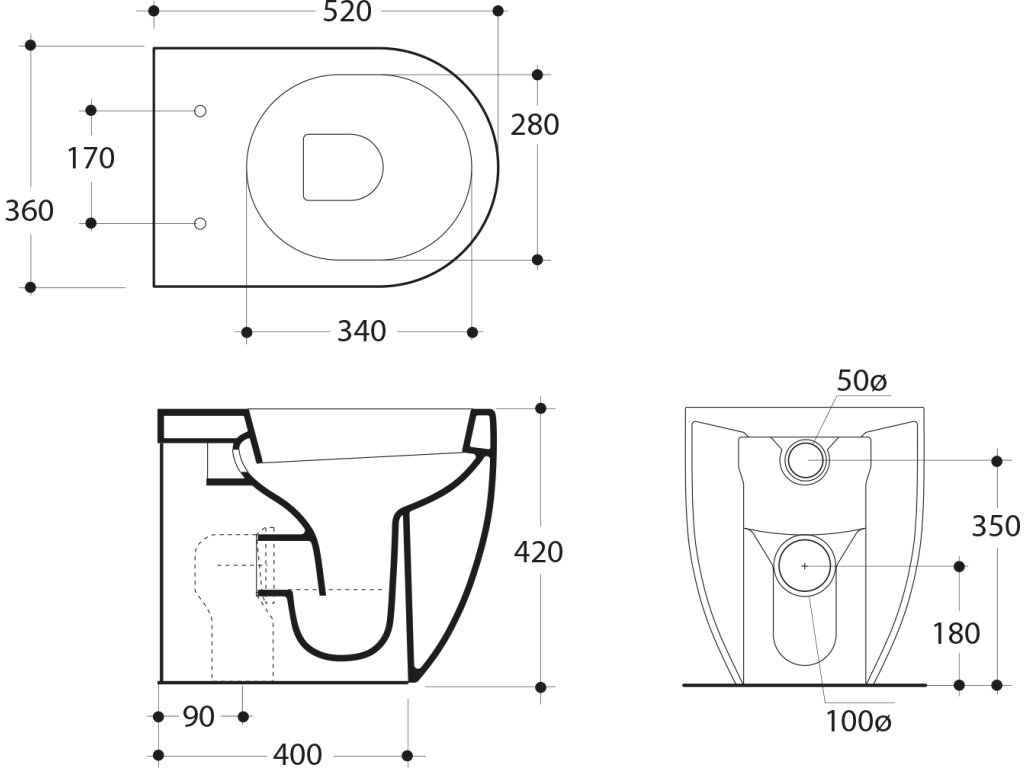 Kerasan FLO WC mísa stojící, 36x51, 5cm, spodní/zadní odpad, bílá 311601