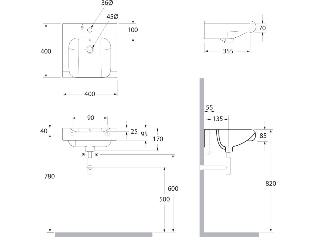 Instalace: | Nástěnná-šrouby, Polozápustné |