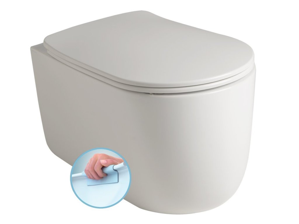 Rimless (NoRim) – toalety bez tradičního oplachového kruhu. Hladký povrch bez dutin a záhybů. Oplachová voda vytéká rozdělovačem vody pouze ze zadní části WC mísy a díky speciálnímu tvaru keramiky dokonale opláchne vnitřní prostor. Výhodou je snadná údržba a čištění WC mísy.