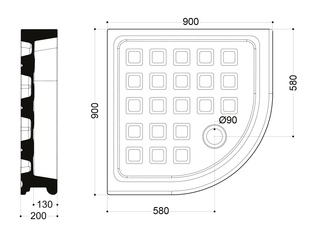 Kerasan RETRO keramická sprchová vanička, čtvrtkruh 90x90x20cm, R550, bílá 133901