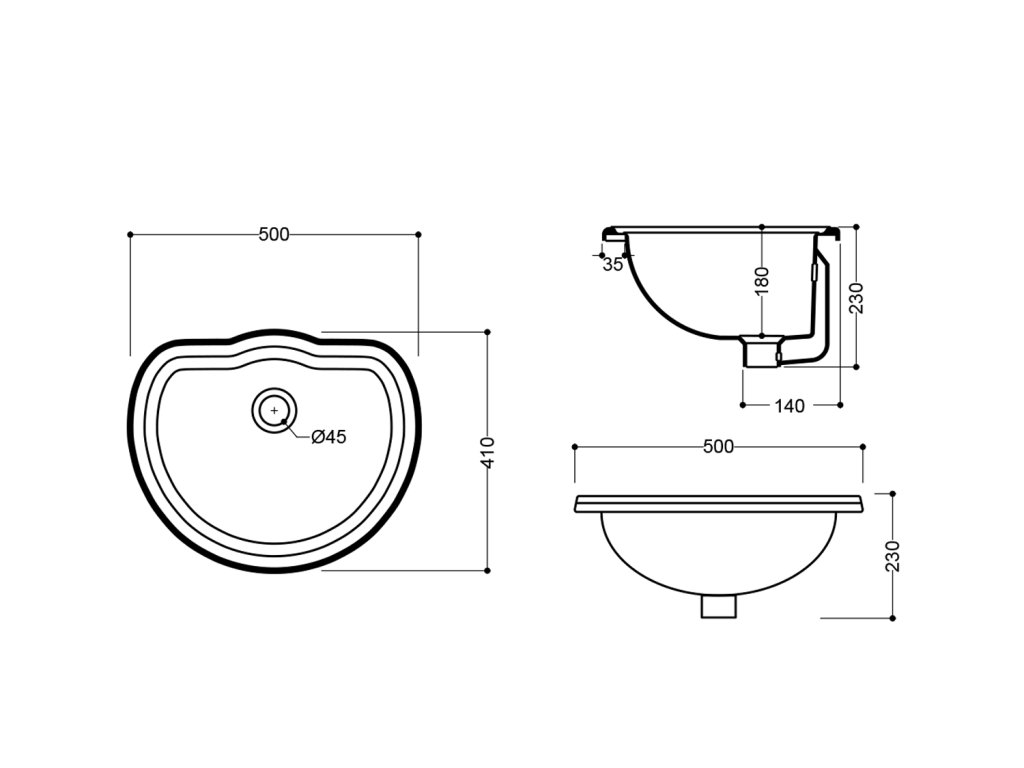 Kerasan RETRO keramické umyvadlo zápustné, 50x41cm, bílá 103101