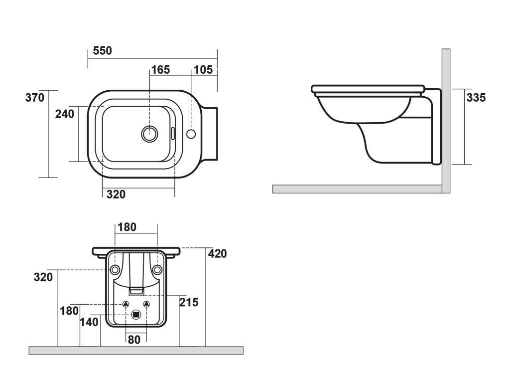 Kerasan WALDORF bidet závěsný 37x55cm, černá mat 4125K7