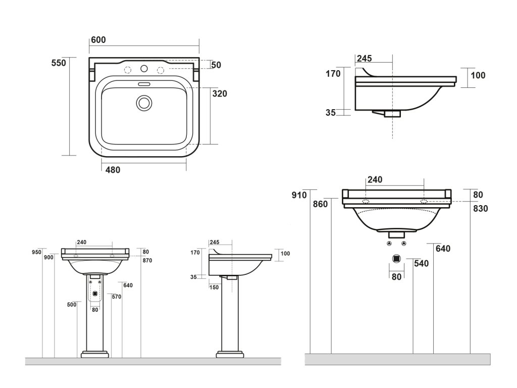 Kerasan WALDORF keramické umyvadlo 60x55cm, bílá 4140K1
