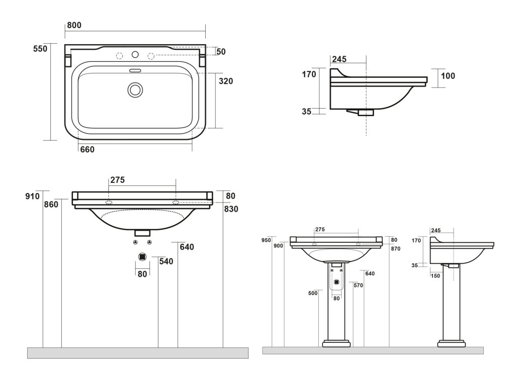 Kerasan WALDORF keramické umyvadlo 80x55cm, černá mat 4141K7