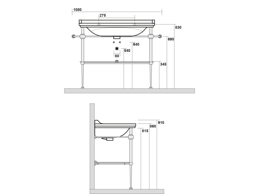Kerasan WALDORF konstrukce pro umyvadlo 100cm se skleněnou poličkou, chrom 9196K1