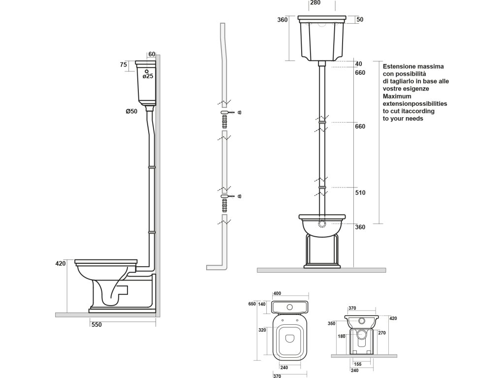 Kerasan WALDORF WC mísa s nádržkou, spodní/zadní odpad, černá-chrom WCSET27-WALDORF