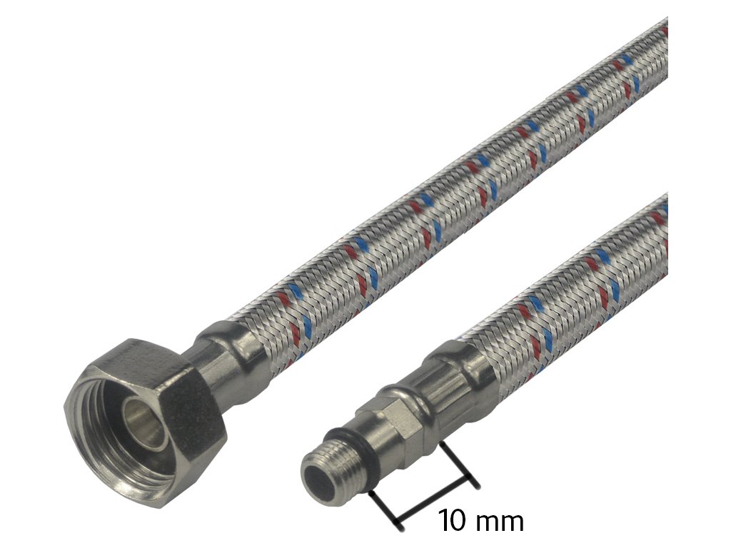 Soubory ke stažení:Nerezová připojovací hadice na vodu se velmi často používají k připojení WC, nádržek, stojánkových vodovodních baterií a jiných zařízení. Hadice jsou vyrobeny z vysoce jakostního EPDM s opletem z kvalitní nerezi a s poniklovanými koncovkami z mosazi s vnitřním a vnějším závitem podle evropských standardů ISO 228. Výhodou nerezových připojovacích hadic je velmi snadná manipulace a montáž. Umožňují také částečné pohlcení hydraulických rázů. Na hadice nesmí působit agresivní prostředí a látky způsobující korozi. Hadice jsou vhodné pro rozvody vody, vzduchu a neabrazivních a neagresivních kapalin s maximálním tlakem do 10 bar a provozní teplotou max. 95 °C.