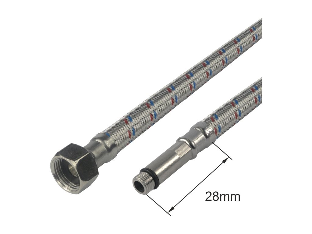 Soubory ke stažení:Nerezová připojovací hadice na vodu se velmi často používají k připojení WC, nádržek, stojánkových vodovodních baterií a jiných zařízení. Hadice jsou vyrobeny z vysoce jakostního EPDM s opletem z kvalitní nerezi a s poniklovanými koncovkami z mosazi s vnitřním a vnějším závitem podle evropských standardů ISO 228. Výhodou nerezových připojovacích hadic je velmi snadná manipulace a montáž. Umožňují také částečné pohlcení hydraulických rázů. Na hadice nesmí působit agresivní prostředí a látky způsobující korozi. Hadice jsou vhodné pro rozvody vody, vzduchu a neabrazivních a neagresivních kapalin s maximálním tlakem do 10 bar a provozní teplotou max. 95 °C.