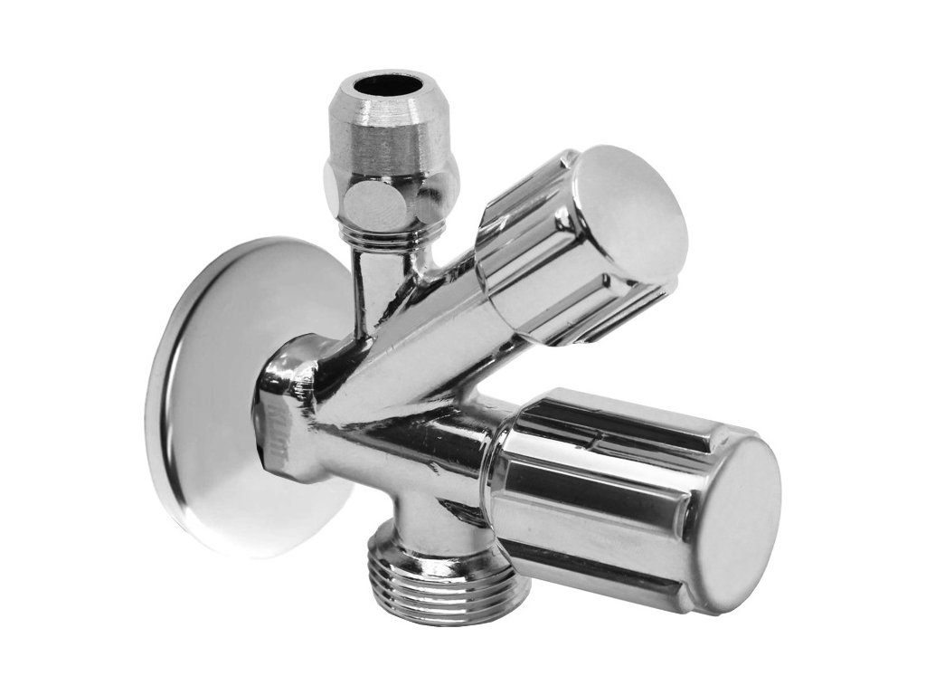 Klum Ventil rohový pro pračku a WC se zpětnou klapkou a růžicí, pochrom. mosaz, 1/2"x3/8"x3/4" CR39CN