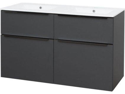 Mailo, koupelnová skříňka s keramickým umyvadlem, 1210x720x476 mm, spodní, antracit, 4 zásuvky, černé madlo.