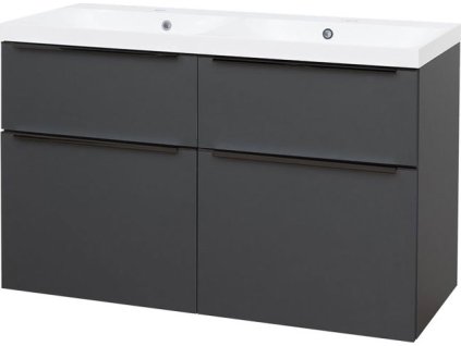 Mailo, koupelnová skříňka s umyvadlem z litého mramoru, 1210x750x476 mm, spodní, antracit, 4 zásuvky, černé madlo.