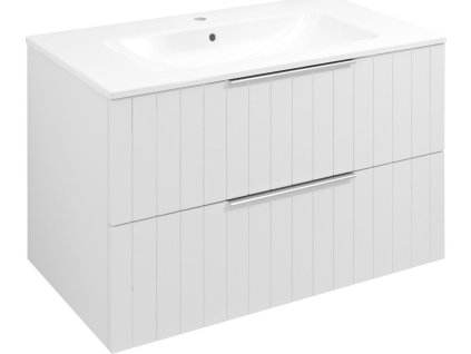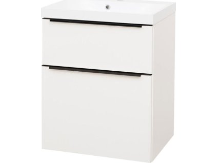 Mailo, koupelnová skříňka s keramickým umyvadlem, 610x720x476 mm, spodní, bílá mat, 2 zásuvky, černé madlo.