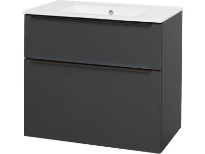 Mailo, koupelnová skříňka s keramickým umyvadlem, 810x720x476 mm, spodní, antracit, 2 zásuvky, černé madlo.