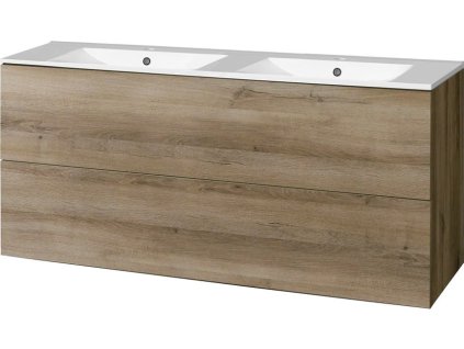 Aira, koupelnová skříňka s keramickým umyvadlem 1210x548x465 mm, spodní, dub Halifax, 2 zásuvky, push-open systém a pomalé dovírání.