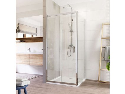 Hliníkové profily v barvě chrom, dveře posuvné, sklo Čiré, síla skla 6 mm, čtverec, rozměr 900 x 900 mm, výška 1900 mm