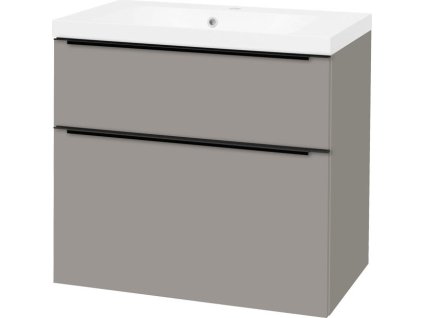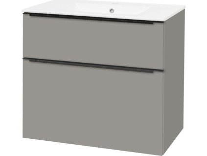 Mailo, koupelnová skříňka s keramickým umyvadlem, 810x720x476 mm, spodní, šedá mat mat, 2 zásuvky, černé madlo.