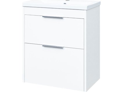 Leny, koupelnová skříňka s keramickým umyvadlem, 600x675x420 mm, spodní, bíla lesklá, 2 zásuvky.