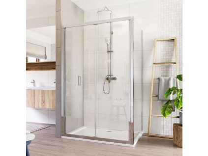 Hliníkové profily v barvě chrom, zalamovací dveře a dva pevné díly, sklo Point, síla skla 6 mm, obdélník, rozměr 1200x900x1200 mm, výška 1900 mm.