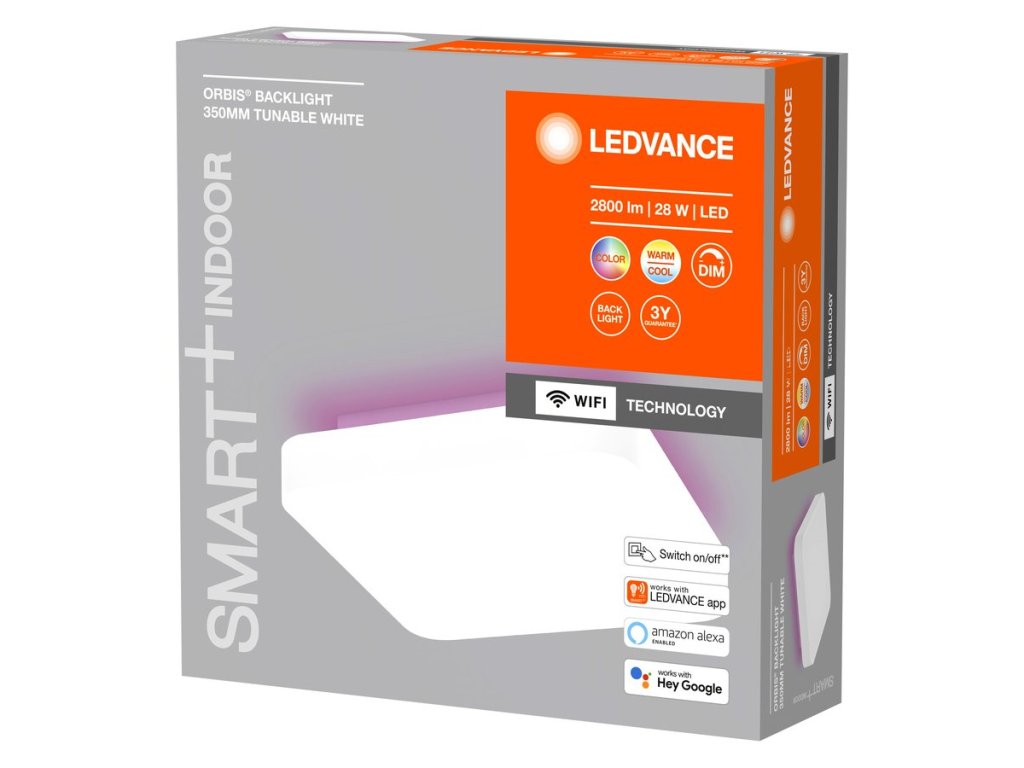 LEDVANCE ORBIS BACKLIGHT stropní svítidlo, 350x350mm, WIFI RGB+stmívatelné, 2800lm, 28W, IP20, bílá AC314090055