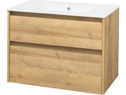 Opto, koupelnová skříňka s keramickým umyvadlem, 810x600x460 mm, spodní, dub Riviera, 2 zásuvky.
