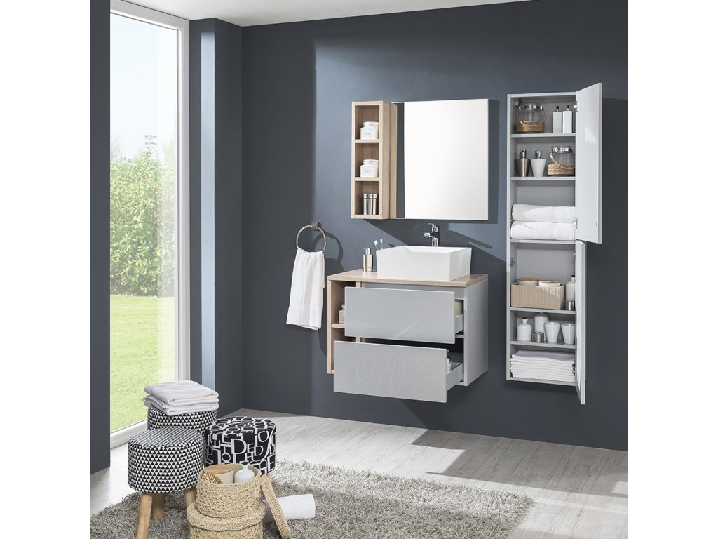 Soubory ke stažení:Série koupelnového nábytku Aira umožňuje kombinovat horní i spodní skříňky do mnoha různých variant. Vytvořit tak lze jak složité kombinace do velkých koupelen, tak minimalistické řešení v moderním designu. Otevírání zásuvek a dvířek je řešeno systémem push-open, tedy otevíráním, bez úchytek. Šuplíky jsou osazeny pojezdy s pomalým dovíráním. Na výběr je ze čtyř barevných kombinací, bílá lesk, dub Kronberg, dub Halifax a antracit. Skříňky jsou dodávány smontované a všechny jsou určené k zavěšení.