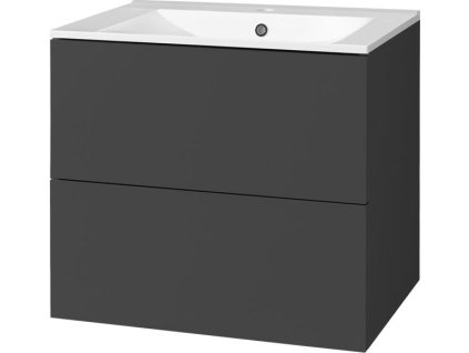 Aira, koupelnová skříňka s keramickým umyvadlem 610x548x465 mm, spodní, antracit, 2 zásuvky, push-open systém a pomalé dovírání.