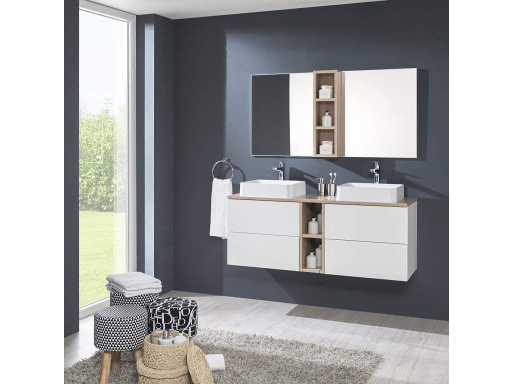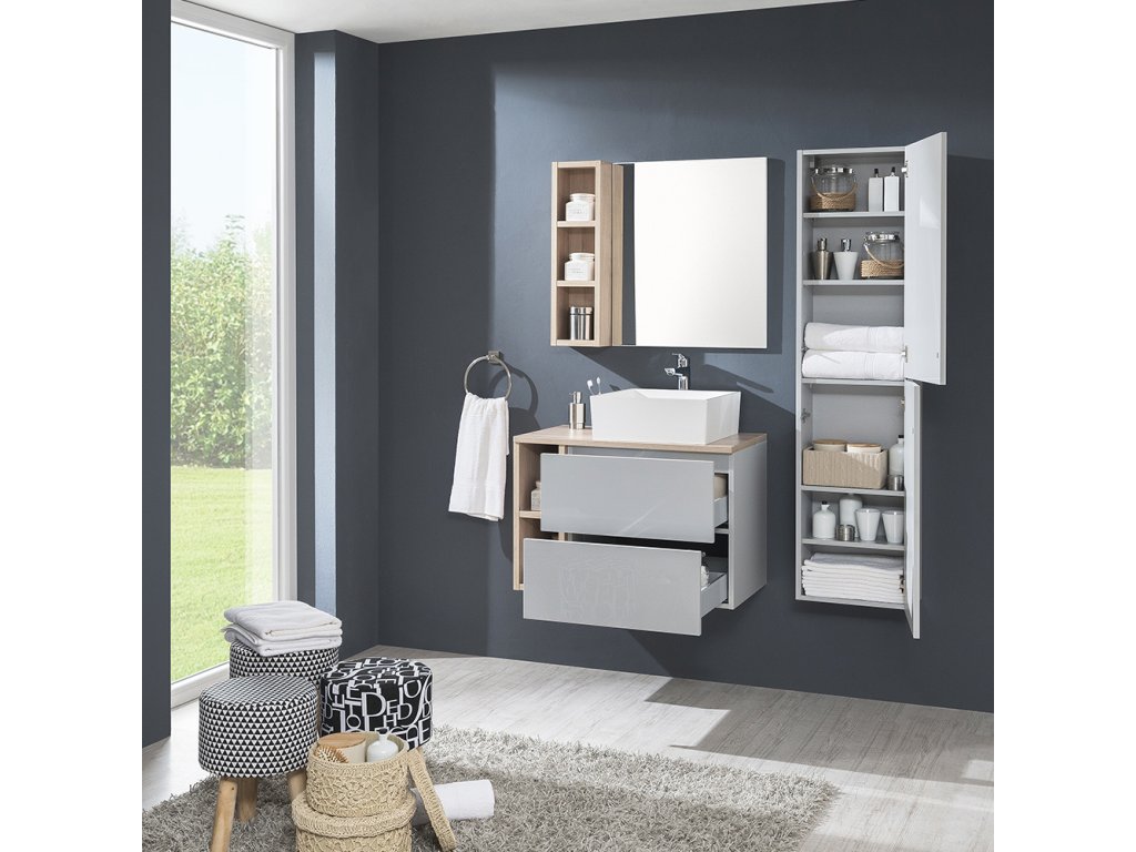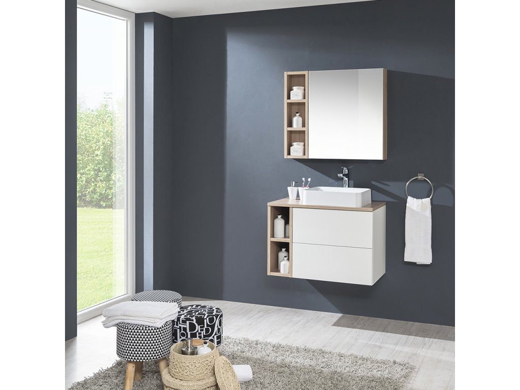 Koupelnová galerka pro serie Aira, Ponte 800x700x140 mm, zrcadlová skříňka se dvěma policovými deskami, 2x dveře, dub Kronberg.