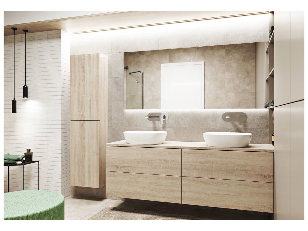 Aira, koupelnová deska na skříňku s laserově opracovanými hranami, dub Kronberg 1620x22x470 mm, pro sestavu skříněk 2x810 mm.