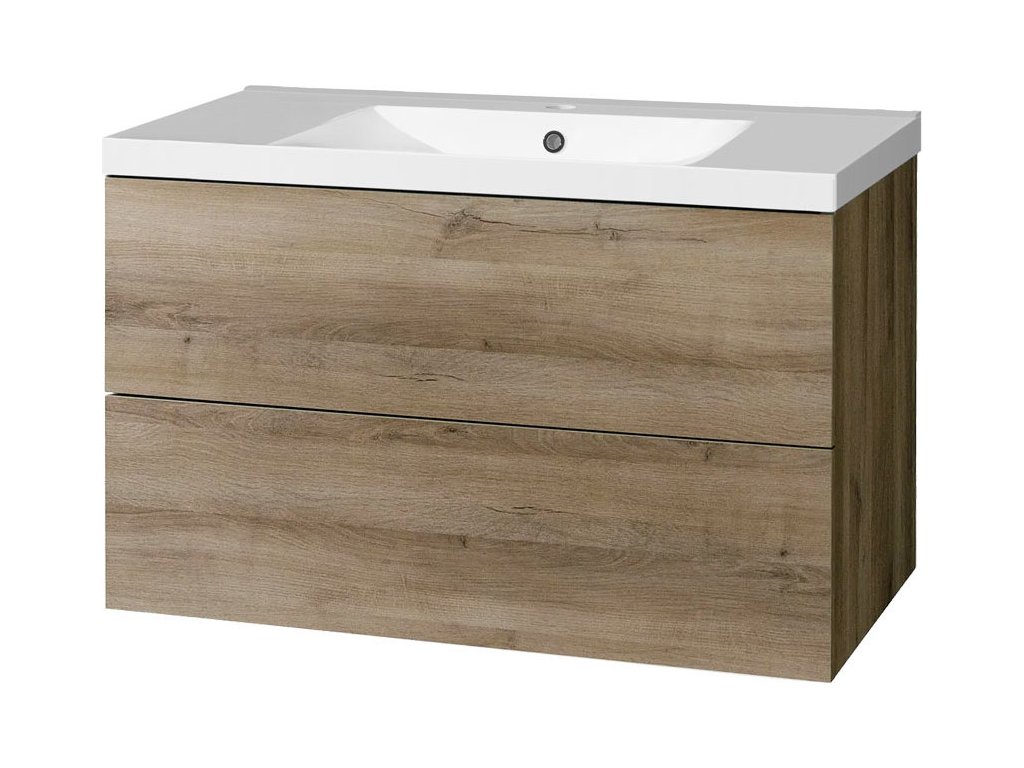 Mereo Aira, koupelnová skříňka s umyvadlem z litého mramoru 101 cm, dub Halifax CN742M