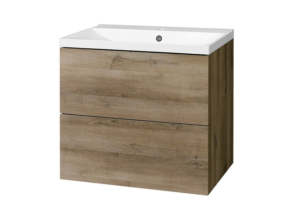 Mereo Aira, koupelnová skříňka s umyvadlem z litého mramoru 61 cm, dub Halifax CN740M