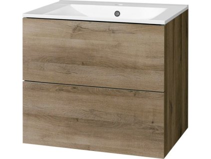 Aira, koupelnová skříňka s keramickým umyvadlem 610x548x465 mm, spodní, dub Halifax, 2 zásuvky, push-open systém a pomalé dovírání.