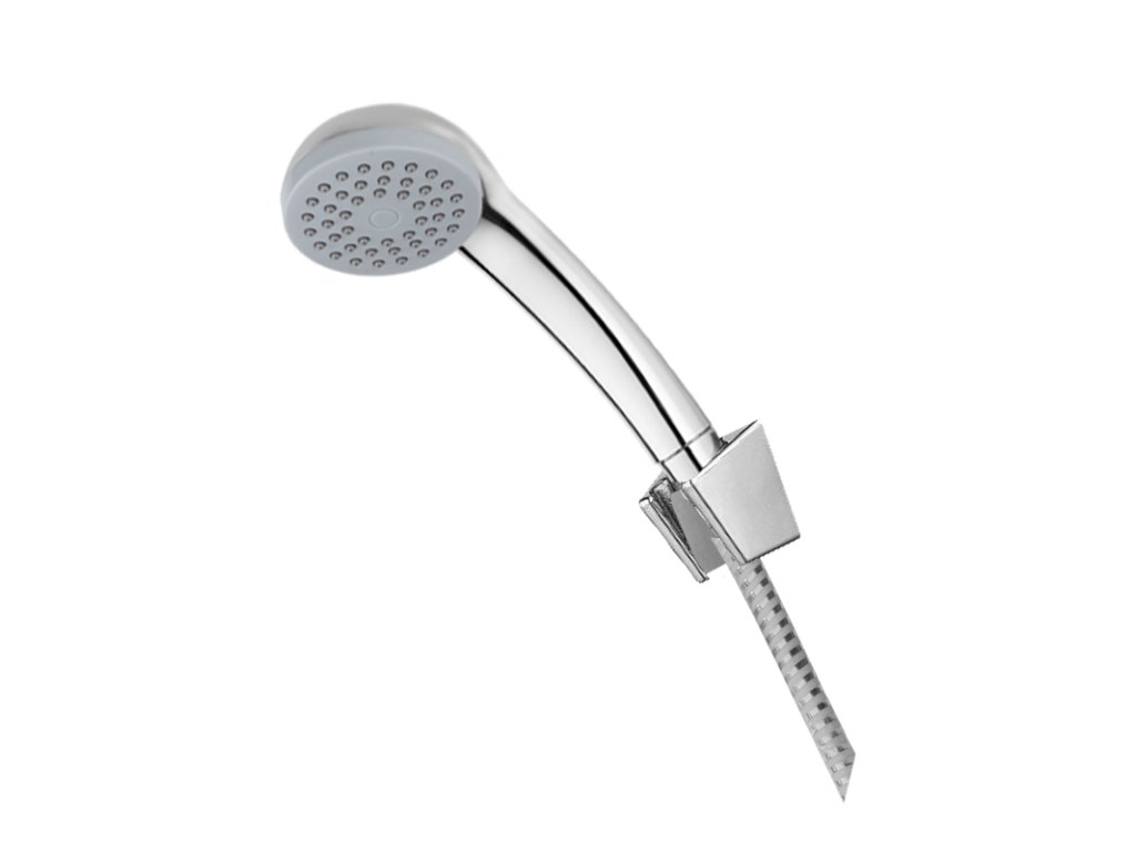 Sprchový set: ruční jednopolohová sprcha, držák sprchy, sprchová hadice 200 cm (bílá - chrom)