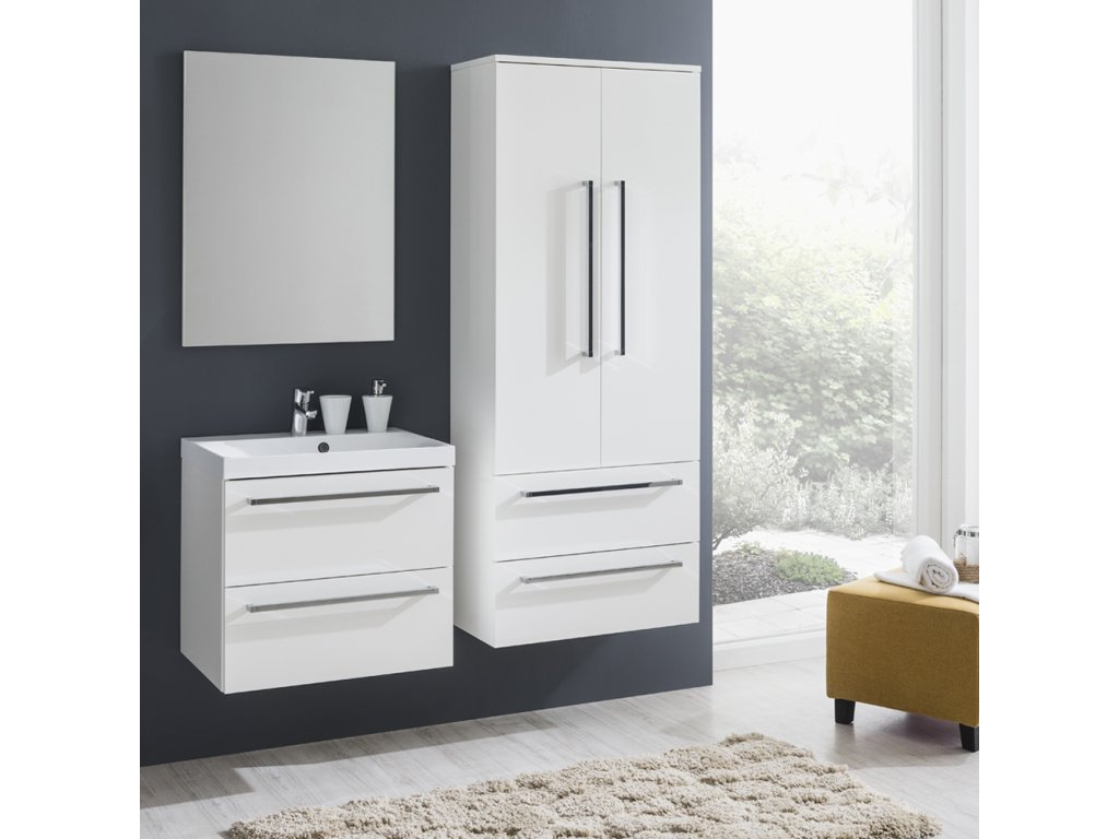 Opto, koupelnová skříňka 1005x580x458 mm, spodní, bílá lesk, 2 zásuvky. Možno kombinovat s umyvadlem, popř. s koupelnovou deskou na skříňku.