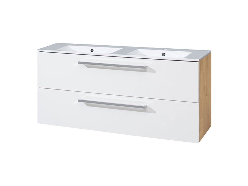 Mereo Bino, koupelnová skříňka s keramickým umyvadlem 121 cm, bílá/dub CN673