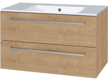 Bino, koupelnová skříňka s keramickým umyvadlem, 1010x548x460 mm, spodní, dub Arlington, 2 zásuvky