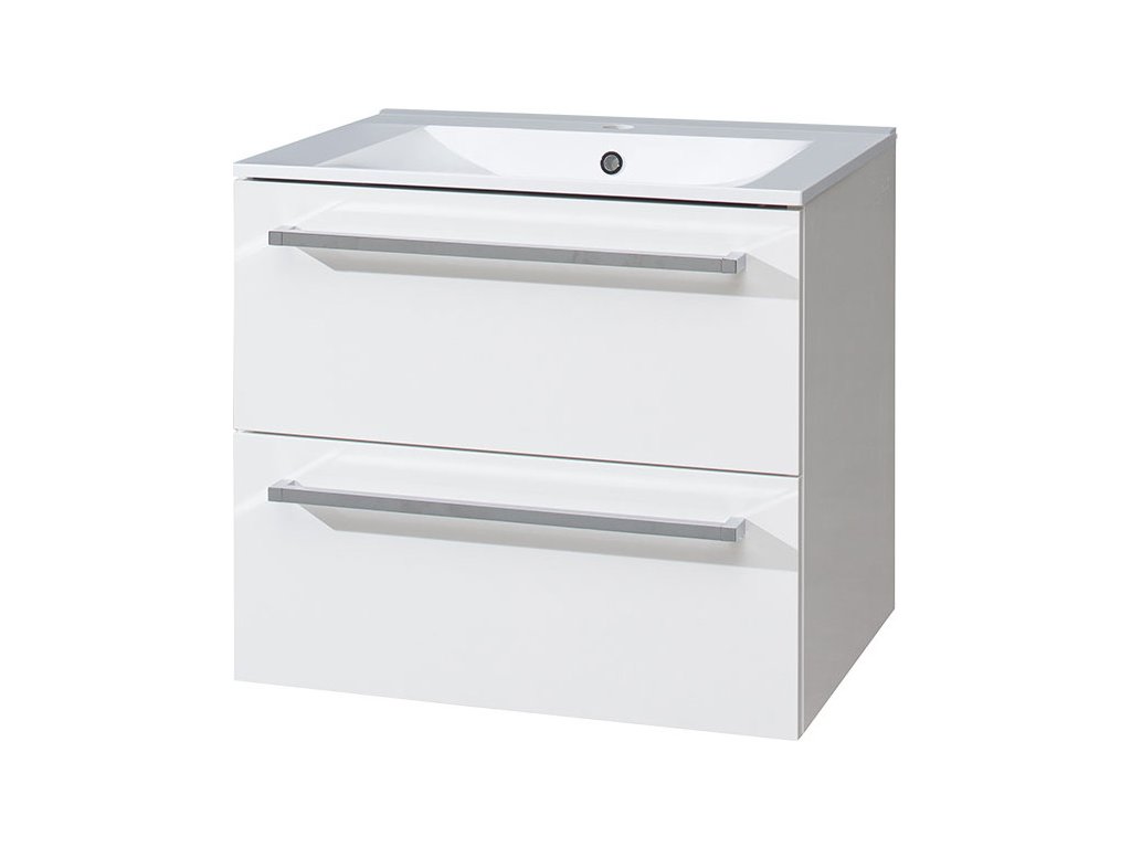 Opto, koupelnová skříňka s keramickým umyvadlem, 610x600x460 mm, spodní, bílá lesk, 2 zásuvky.