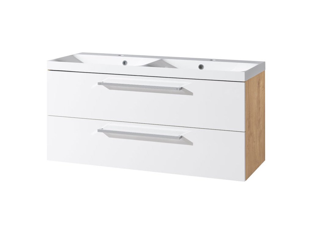 Mereo Bino, koupelnová skříňka s umyvadlem z litého mramoru 121 cm, bílá/dub CN673M