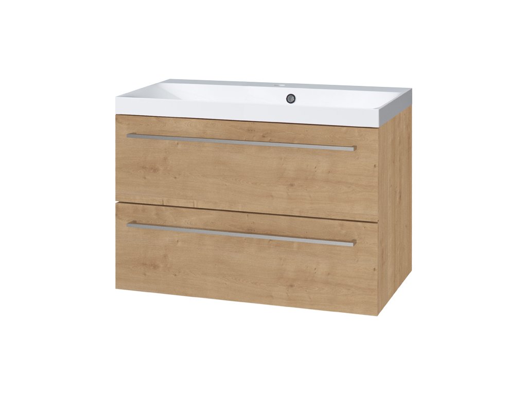Mereo Bino, koupelnová skříňka s umyvadlem z litého mramoru 81 cm, dub Arlington CN621M