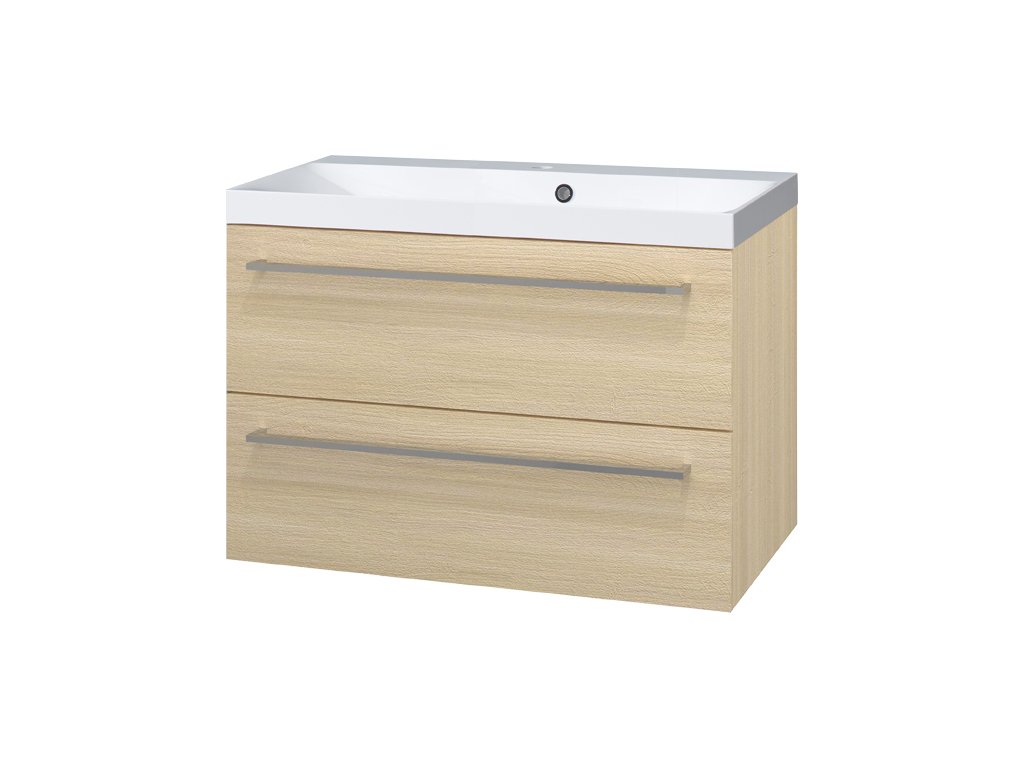 Mereo Bino, koupelnová skříňka s umyvadlem z litého mramoru 81 cm, dub Sand Barbera CN631M