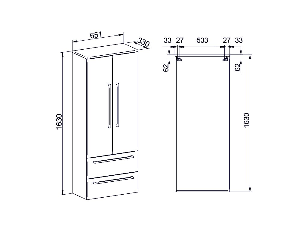 Mereo Bino, koupelnová skříňka vysoká 163 cm, dvojitá, Multidecor, Ořech Pacifik tabákový CN699OPT2