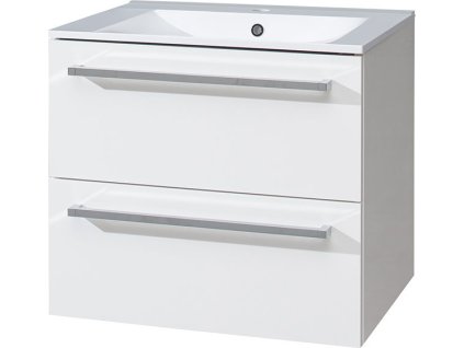 Bino, koupelnová skříňka s keramickým umyvadlem, 610x548x460mm, spodní, bílá lesk, 2 zásuvky.