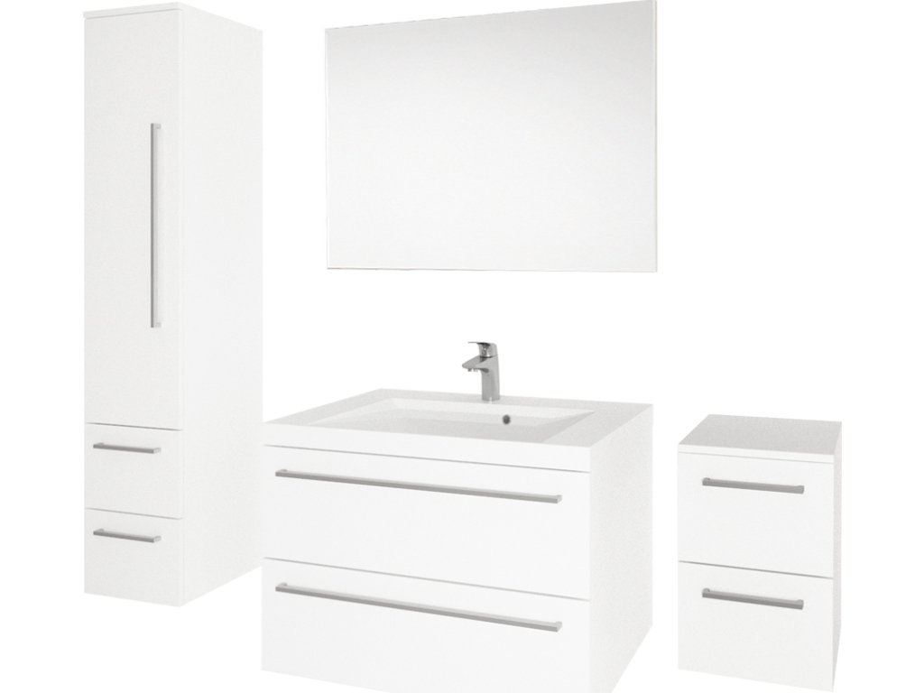 Bino, koupelnová skříňka s umyvadlem z litého mramoru, 810x578x460 mm, spodní, bílá lesk, 2 zásuvky.