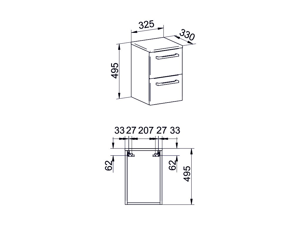 Bino, koupelnová skříňka 605x528x458 mm, spodní, lesklá bílá, 2 zásuvky. Možno kombinovat s umyvadlem, popř. s koupelnovou deskou na skříňku.
