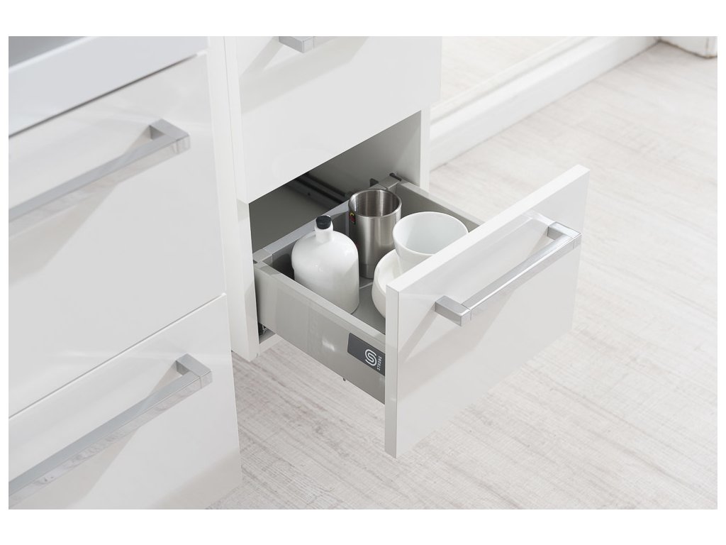 Bino, koupelnová skříňka 805x528x458 mm, spodní, lesklá bílá, 2 zásuvky. Možno kombinovat s umyvadlem, popř. s koupelnovou deskou na skříňku.