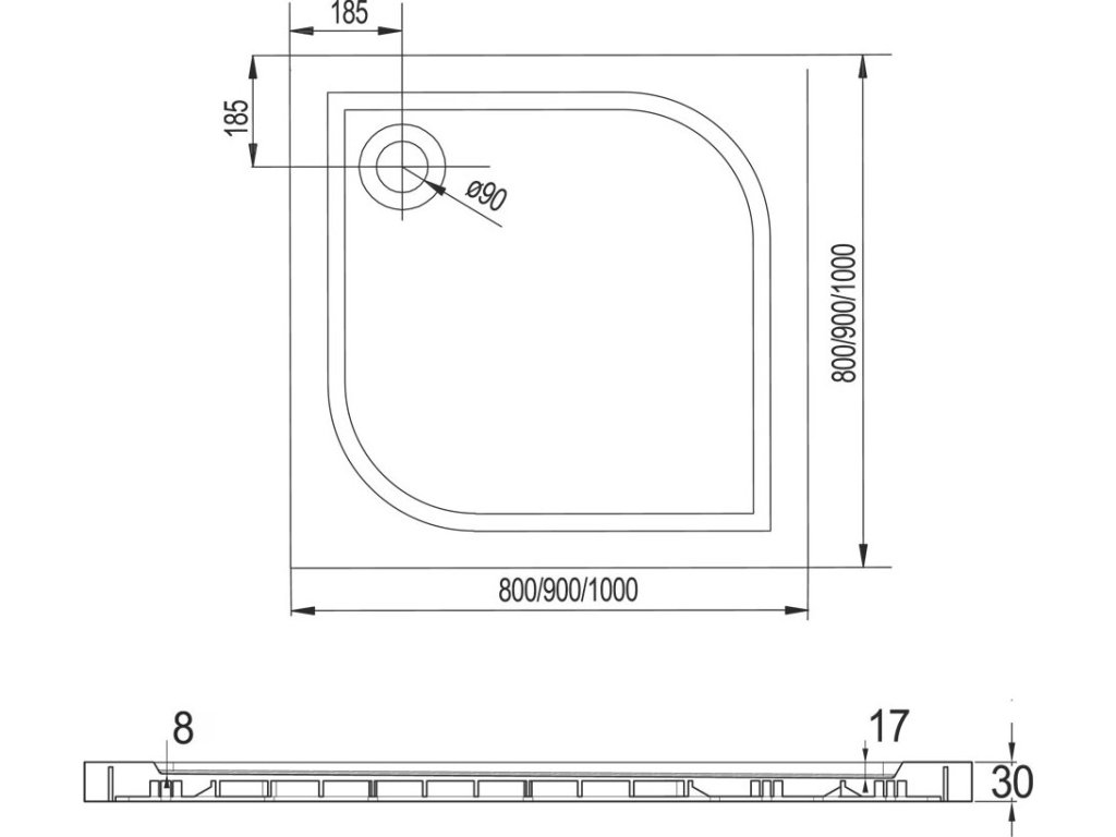 - otvor pro sifon ø 90 mm