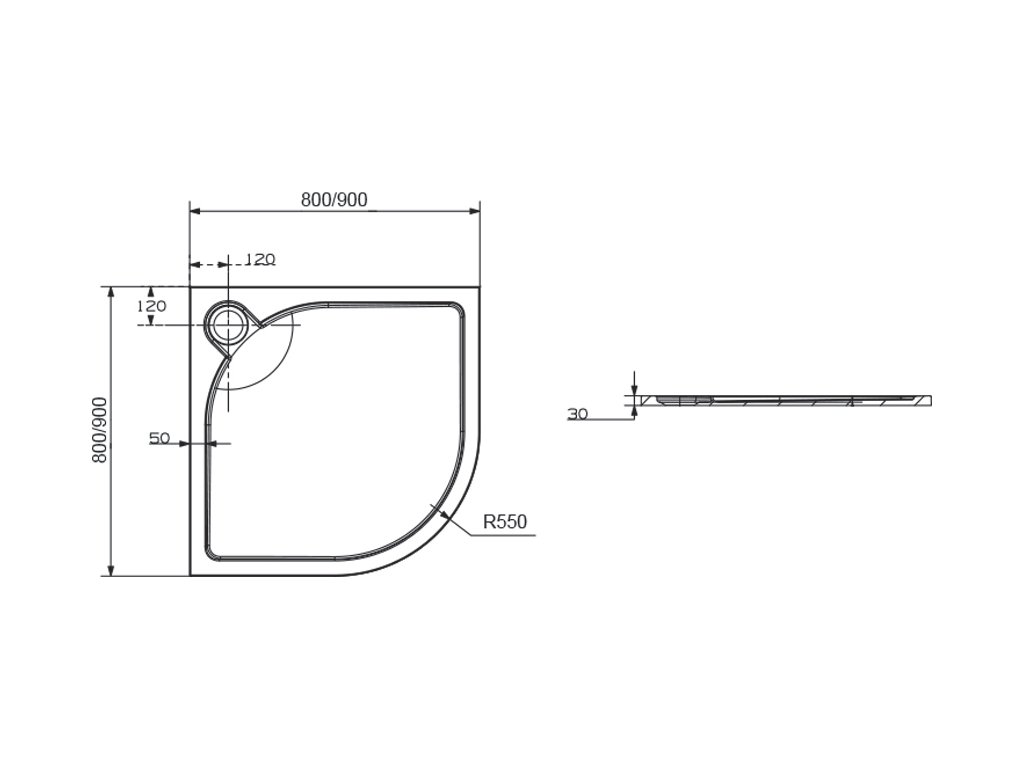 Mereo Čtvrtkruhová sprchová vanička s oblým krytem sif., 90x90x3 cm, vč. sif., bez nožiček, litý mramor CV05CS